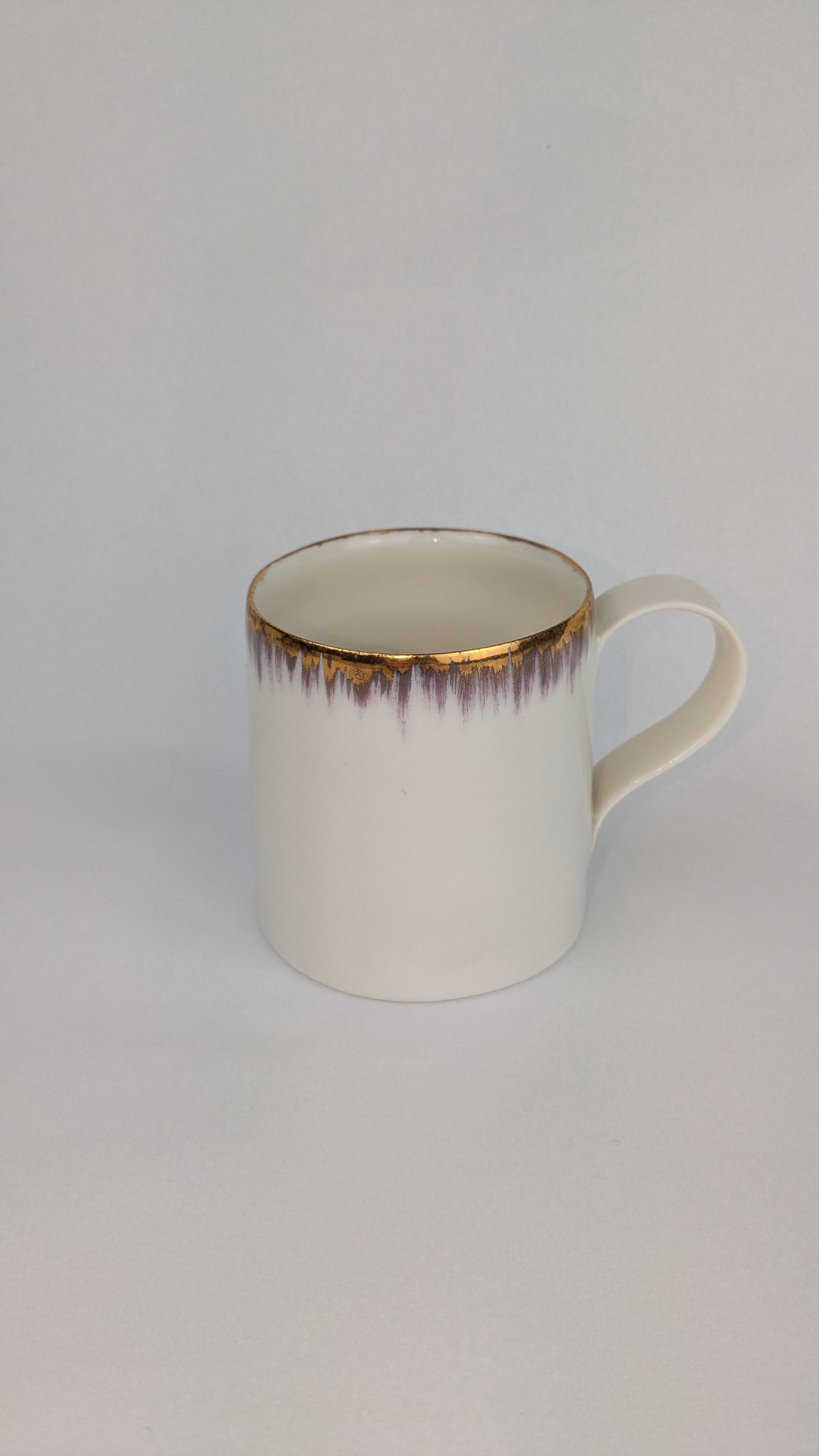 Hand thrown cup decorated with a brushed edge painted with gold lustre.
