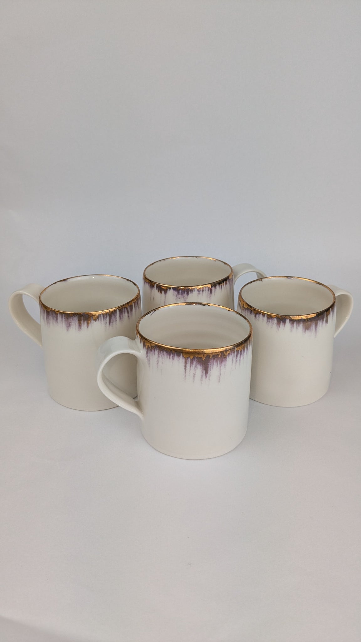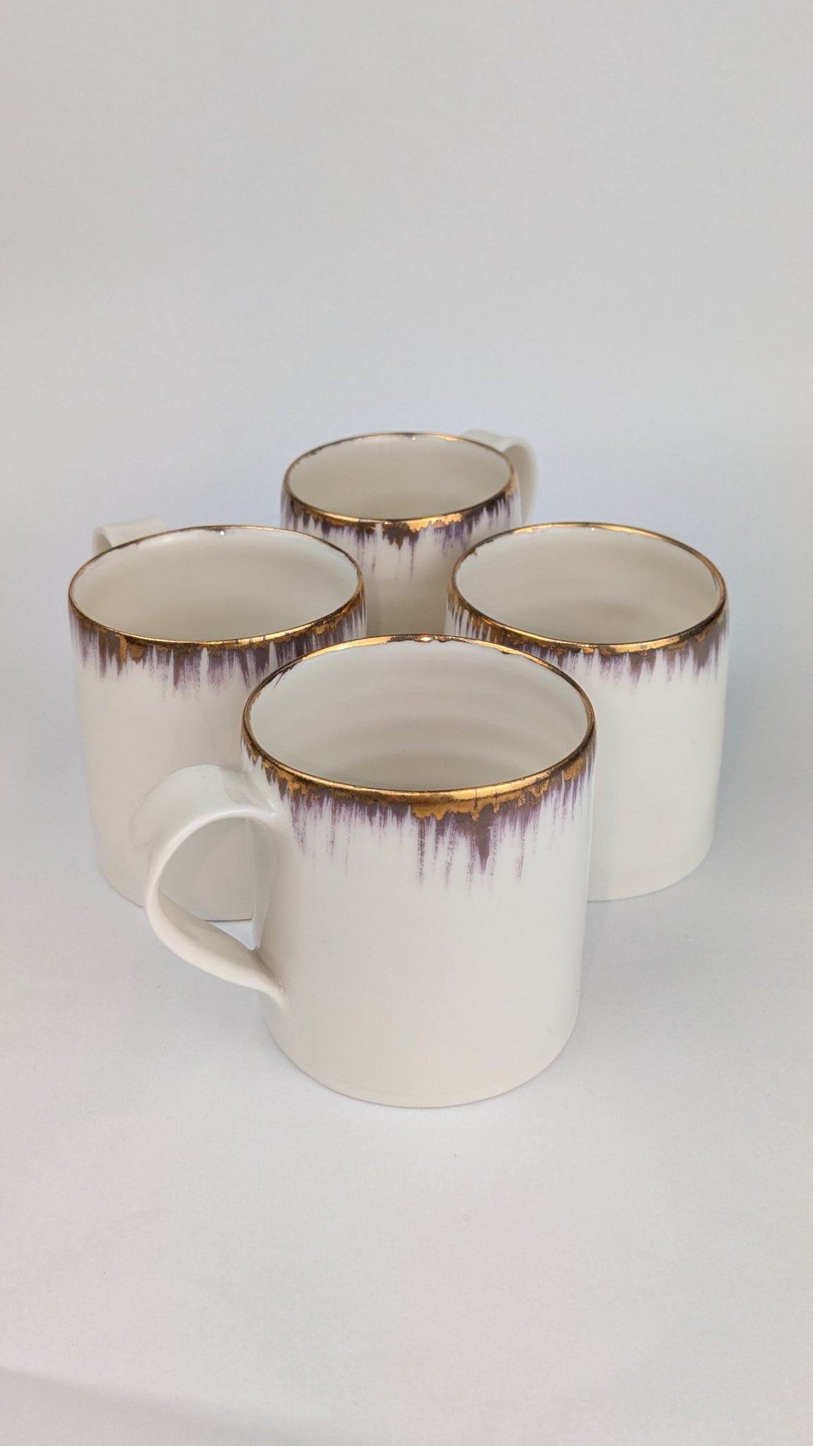 This work is triple fired and the gold is real! Throwing lines are clearly visible and the shapes can be charmingly wobbly.